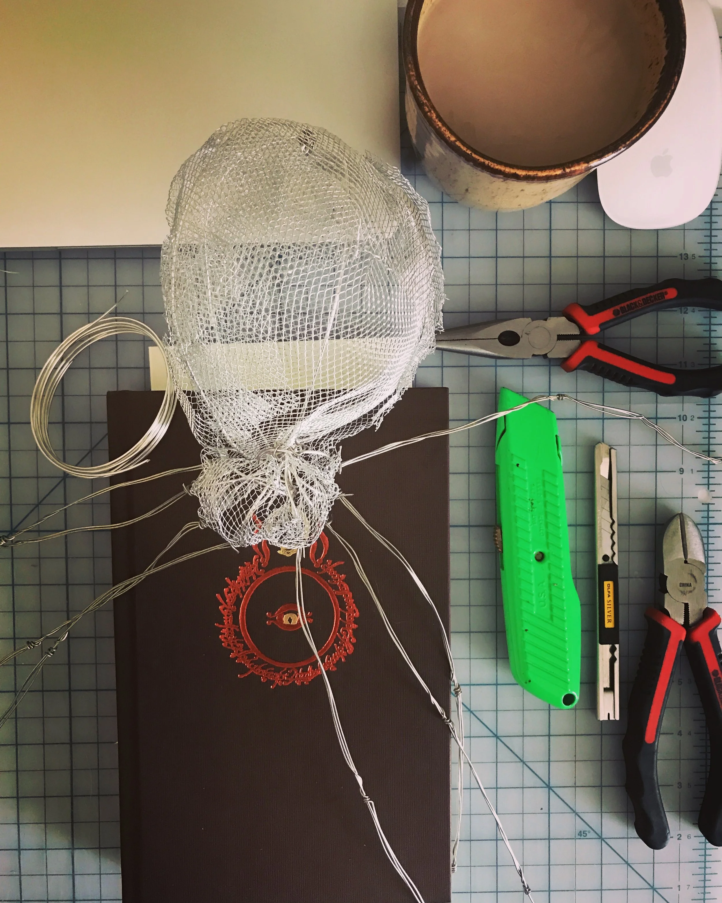 The creation of this monstrous piece began with acquiring two copies of The Two Towers—one to carefully dismantle for its pages and the other to serve as the foundation of the sculpture. I first constructed a wireframe using mesh, then gradually built up Shelob’s body, layering pages from her chapter to symbolically bring her to life. Her spindly legs were wrapped in thread, which I frayed with a sharp edge to mimic the fine, hair-like texture of a real spider, enhancing her eerie presence.